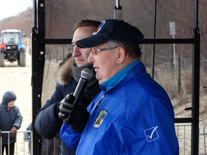 Po rozgrzewce Morsy poszły rozebrać się do Kąpieli w domku – szatni. W tym czasie na scenie pojawił się Prezes Honorowy GKM Kolega Lech Szymaniuk i opowiedział co nieco o historii Klubu. O początkach działalności w roku 1975 w ramach TKKF Dębinki, o pierwszych kąpielach w Jelitkowie, budowie domku – szatni, a także o zdrowotnych zaletach kąpieli „zimnowodnych”.