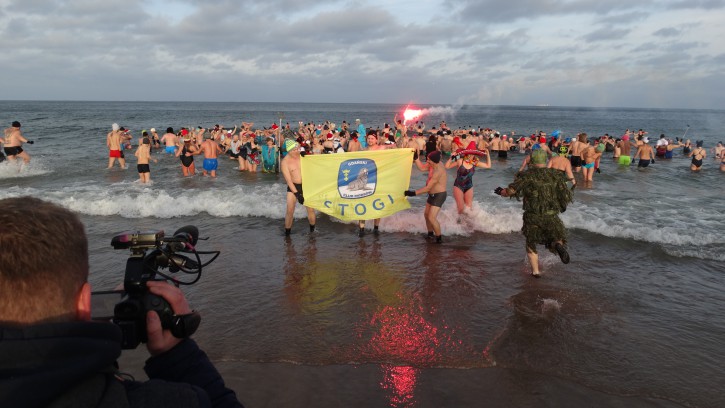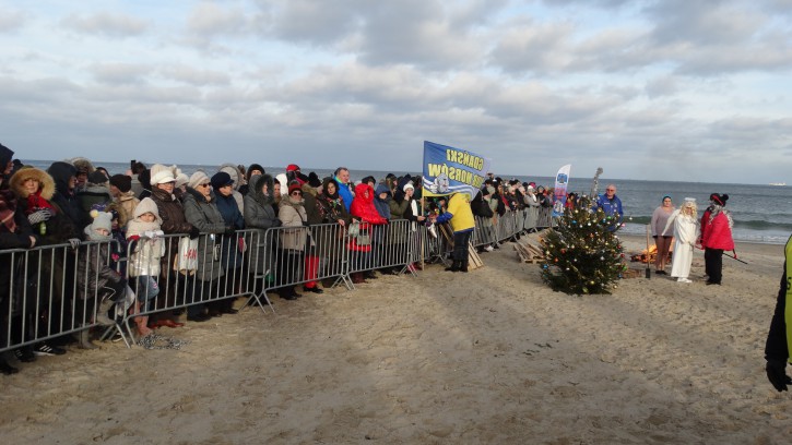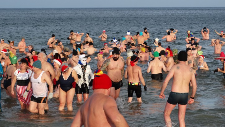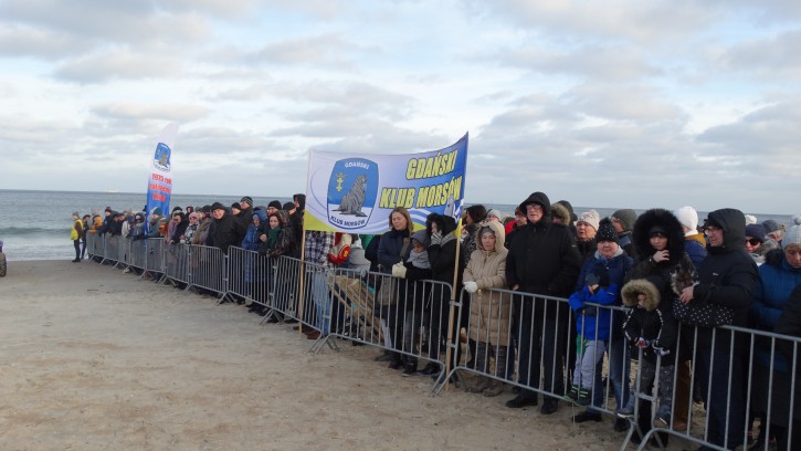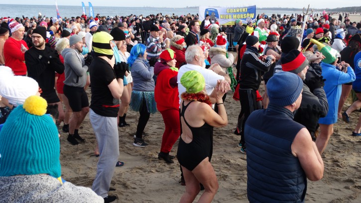 Na plaży w Gdańsku Jelitkowie, 1-go stycznia, jak zawsze od kilkunastu lat zebrali się tłumnie mieszkańcy Trójmiasta oraz liczni turyści, aby wspólnie z Gdańskimi Morsami oraz władzami Gdańska przywitać Nowy, 2020 Rok.