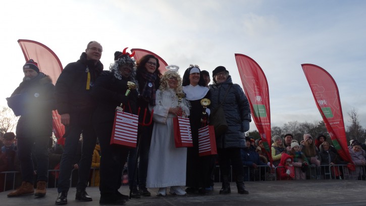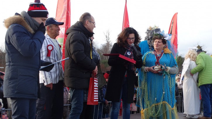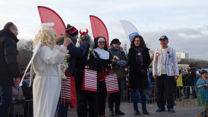 Pani Prezydent wspomniała, że może kiedyś wykąpie się razem z Morsami (ale jeszcze nie dzisiaj). Wskazała, że wśród Morsów znajduje się jej Zastępca Pan Piotr Grzelak i że najpewniej weźmie udział w kąpieli. Następnym punktem programu był wybór 3 najlepiej „przebranych” Morsów. Do komisji oceniającej „przebrania” dołączyła obecna na plaży Posłanka na Sejm RP Pani Henryka Krzywonos. Najciekawiej zaprezentowały się Aniołek, Diabełek i Zakonnica – za przebrania Morsy dostały upominki.