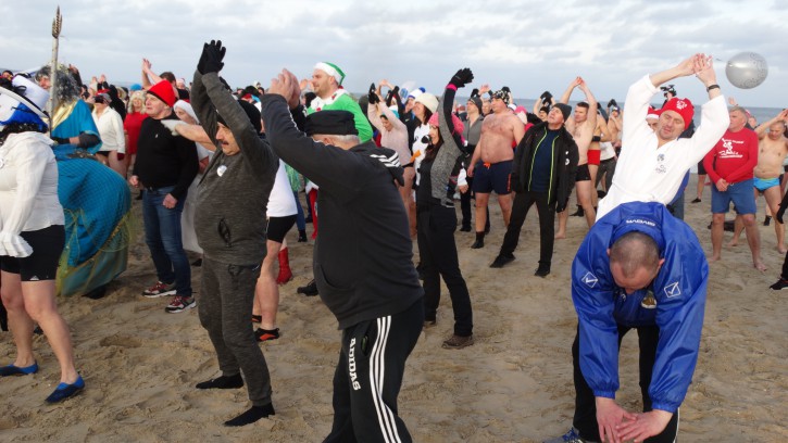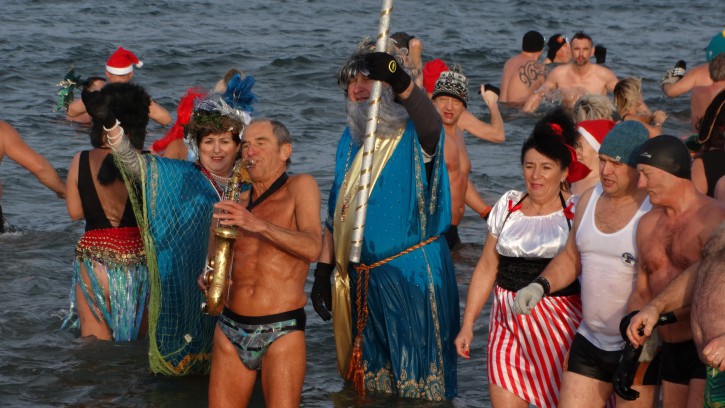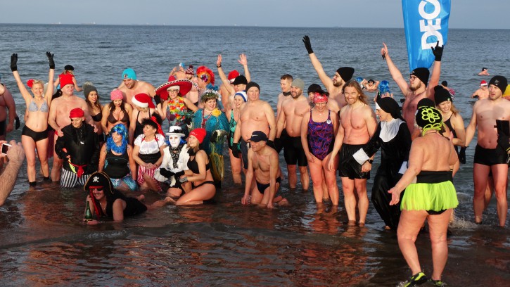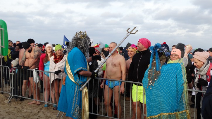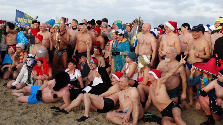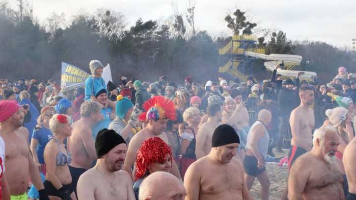 Przed wejściem do wody została jeszcze tylko „minuta dla reporterów”, czyli zbiorowe zdjęcie wszystkich Morsów witających swoją kąpielą Nowy Rok.