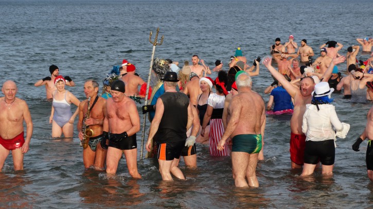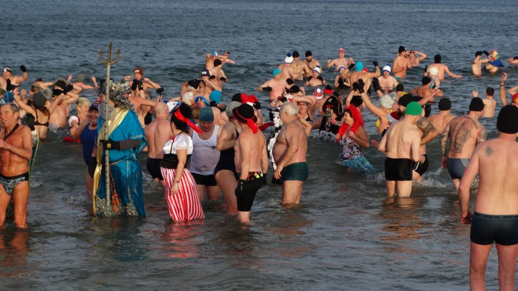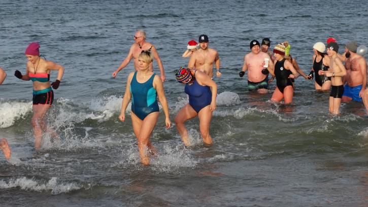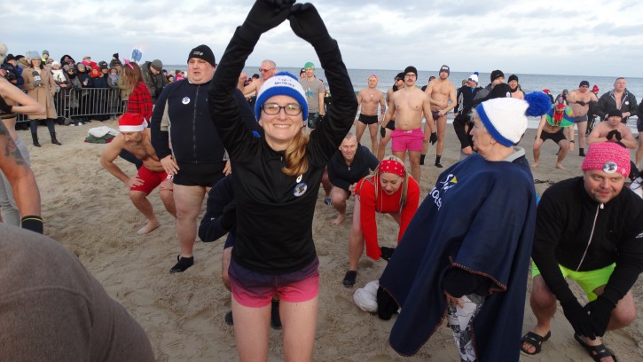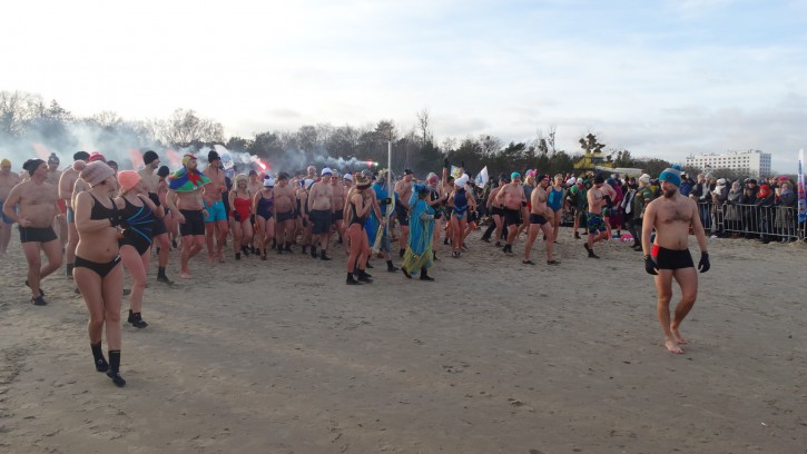 Zabawom w wodzie nie było końca. Co prawda coraz częściej podczas kąpieli noworocznej Morsy więcej pozują do zdjęć niż kąpią się, ale wejście do zimnej wody i zanurzenie się w niej chociaż na chwilę też wymaga odpowiedniego hartu ducha. No ale później trzeba jeszcze trochę „popozować”, gdy się jest mokrym, co przy wietrznej pogodzie nie jest wcale łatwe.