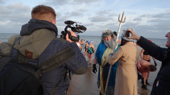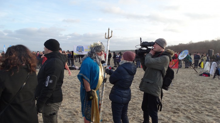 Na wracających z wody Morsów „czyhali” reporterzy, którzy prawie z każdym chcieli przeprowadzić wywiad … szczególnie jeśli to był Król Neptun.