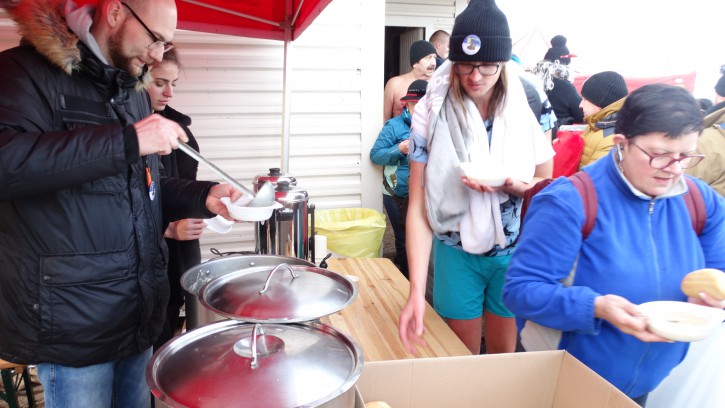 Również jak co roku na zziębnięte Morsy czekała gorąca herbata z sokiem i przepyszny żurek ufundowane przez właścicieli restauracji Karmazyn.